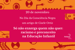 No dia da Consciência Negra, disponibilizamos um artigo de Cisele Ortiz, denominado Só não enxerga quem não quer: racismo e preconceito na Educação Infantil, publicado na Revista Avisa lá no. 23 de junho de 2005. O artigo mantém sua atualidade, mesmo com algumas mudanças observadas em documentos oficiais e em práticas que abordam a questão […]